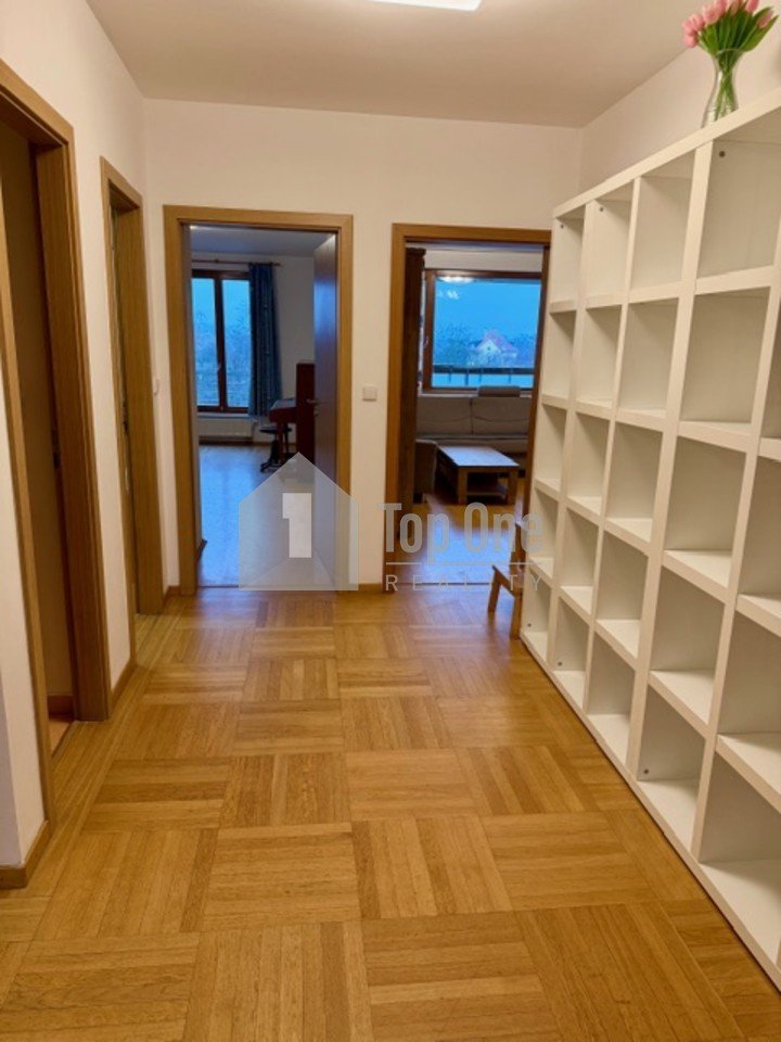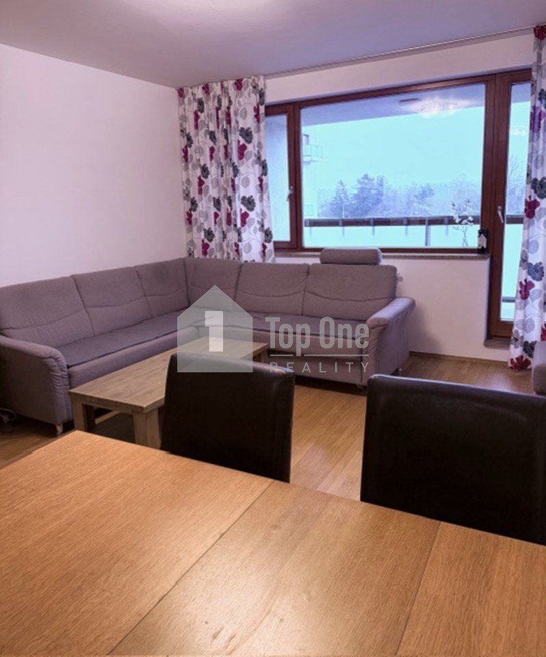 Byt disponuje východně orientovaným velkým obývacím pokojem, z kterého se vstupuje francouzským oknem na prostornou lodžii (5,5 m2) s krásným výhledem do parku. Obývací pokoj je propojen s plně vybaveným kuchyňským koutem. Dále se v bytě nachází tři samostatné neprůchozími pokoje, koupelna s vanou, samostatné WC, praktická komora a chodba, kde je umístěna velká knihovna.